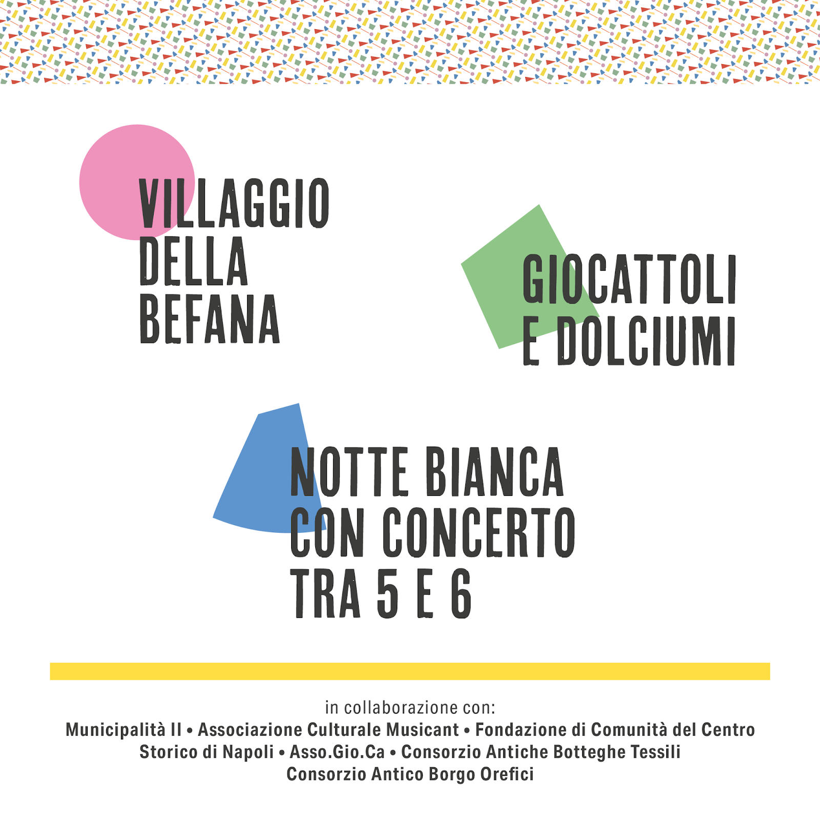 Torna quindi l’Epifania più tradizionale di Napoli con un evento istituzionale ricco di momenti di intrattenimento dedicati non soltanto ai più piccini. In programma c’è infatti anche 𝗹𝗮 𝗡𝗼𝘁𝘁𝗲 𝗯𝗶𝗮𝗻𝗰𝗮 𝗰𝗵𝗲 𝗶𝗹𝗹𝘂𝗺𝗶𝗻𝗲𝗿𝗮̀ 𝗹𝗮 𝗻𝗼𝘁𝘁𝗲 𝗱𝗲𝗹𝗹𝗼 𝘀𝗵𝗼𝗽𝗽𝗶𝗻𝗴 𝘁𝗿𝗮 𝗶𝗹 𝟱 𝗲 𝗶𝗹 𝟲 𝗴𝗲𝗻𝗻𝗮𝗶𝗼, 𝗲𝗱 𝗶𝗹 𝗰𝗼𝗻𝗰𝗲𝗿𝘁𝗼 𝗱𝗶 𝗩𝗮𝗹𝗲𝗻𝘁𝗶𝗻𝗮 𝗦𝘁𝗲𝗹𝗹𝗮, 𝗶𝗻 𝗣𝗶𝗮𝘇𝘇𝗮 𝗠𝗲𝗿𝗰𝗮𝘁𝗼 𝗴𝗶𝗼𝘃𝗲𝗱𝗶̀ 𝟱 𝗴𝗲𝗻𝗻𝗮𝗶𝗼 𝗮𝗹𝗹𝗲 𝟮𝟭:𝟬𝟬 (𝗶𝗻𝗴𝗿𝗲𝘀𝘀𝗼 𝗹𝗶𝗯𝗲𝗿𝗼).